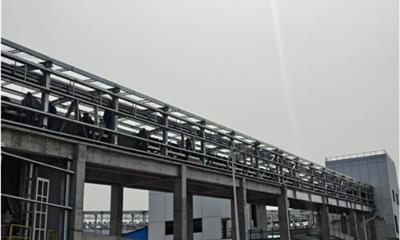 由公司承建的广西省横州市南乡年产370万m3优质花岗岩建筑骨料项目,长皮带机及输送廊道EPC总承包工程在夜幕之下完成输送廊道施工,实现全线贯通。